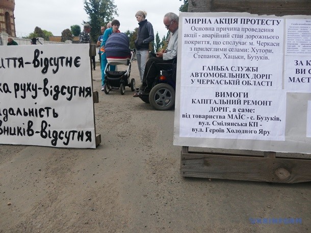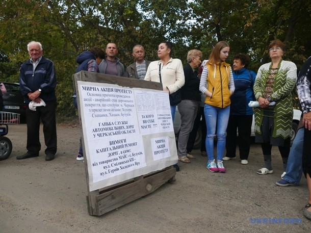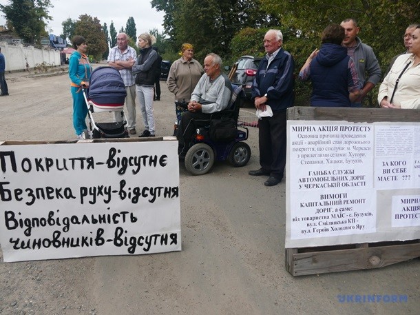 Жителі села Хутори на околиці Черкас заблокували рух транспорту на автодорозі з вимогою привести її в нормальний стан. Про це повідомляє Укрінформ у четвер, 5 вересня.