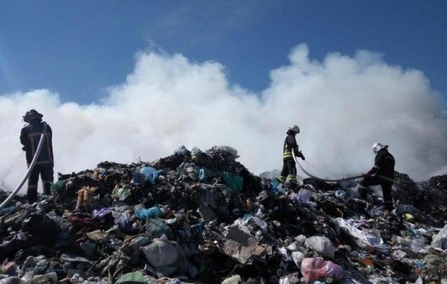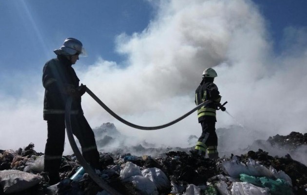 Пожежа на сміттєзвалищі під Києвом виникла сьогодні. Основний осередок загоряння має площу 0,5 га. Крім того, існує декілька окремих осередків загальною площею 1-1,2 га.