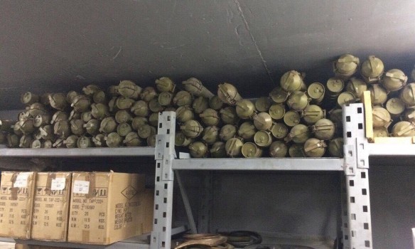 Під час обшуку, який проводився із залученням фахівців вибухово-технічної служби та кінологічного центру, правоохоронці виявили 60 предметів, зовнішньо схожих на ракети до установки «Град», два предмети, схожих на снаряди до БМП (бойової машини піхоти), чотири предмети, схожих на боєприпаси до ПЗРК (переносного зенітно-ракетного комплексу), близько 200 одиниць зброї, схожих на протитанкові міни, СПГ (станковий протитанковий гранатомет), РПГ (ручний протитанковий гранатомет) і бронебійні снаряди. Також у приміщенні був виявлений бронетранспортер.