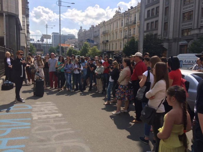 Під будівлею Конституційного суду України зібралися активісти, які вимагають не скасовувати люстрацію.