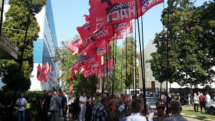 Понад тисяча представників профспілкових організацій та активістів із різних регіонів країни вийшли на акцію «Профспілковий наступ» до приміщення Нацкомісії, що здійснює державне регулювання у сферах енергетики та комунальних послуг, з вимогою не запроваджувати абонплату за газ.