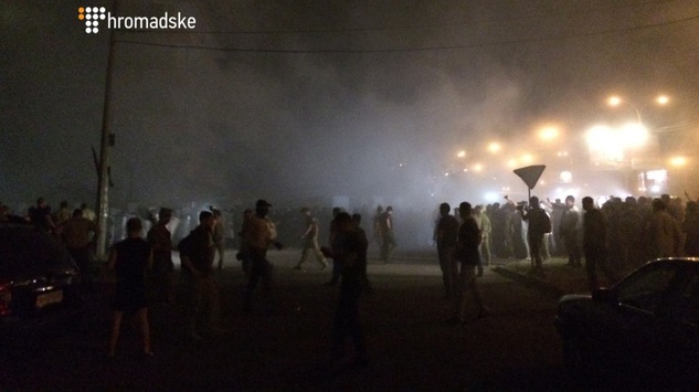 Під Оболонським судом знову зав'язалася бійка: в хід пішли фаєри і димові шашки