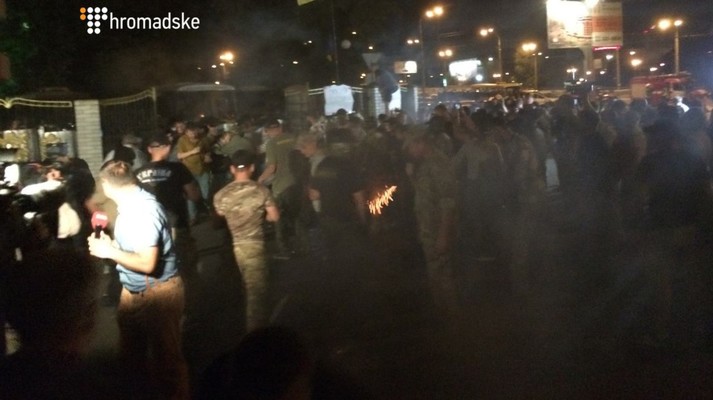 «Зараз ситуація біля Оболонського райсуду нестабільна, тому що коли вийшли народні депутати, вони хотіли щоб пропустили всередину журналістів, але нацгвардійці нас туди не пустили. У той же час мітингувальники намагалися пройти всередину, почалася бійка із застосуванням сльозогінного газу, в хід пішли фаєри і димові шашки. Також мітингувальники почали кидати шини в бік нацгвардійців. Бійці Нацгвардії зараз повністю оточили Оболонський райсуд для того, щоб ніхто не міг туди пройти. Зараз мітингувальники стоять біля нацгвардійців, ніяких дій вони не роблять», - повідомив кореспондент.