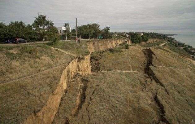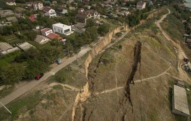 У селі Фонтанка під Одесою відбувся масштабний зсув. Тільки з повітря можна повністю оцінити збитки від інциденту, передає «Думская».
