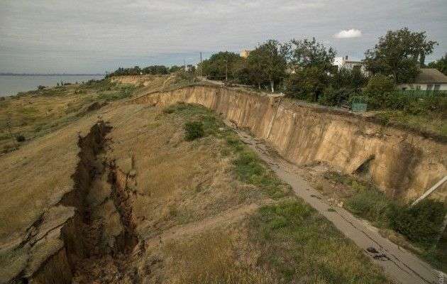 Під Одесою стався великий зсув ґрунту: у прірву впали стовпи і дорога