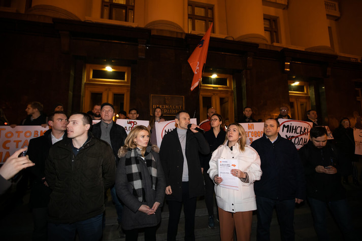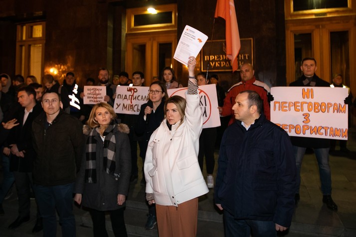 «Якщо в Мінську підпишуть оголошену ініціативу про «Консультативну раду», це стане фактичним визнанням маріонеток Кремля стороною переговорів. Якщо це станеться, влада посадить Україну за один стіл з посібниками Москви, які вбивають наших воїнів за командами з Кремля. Визнання їх суб'єктами на міжнародній арені, а не маріонетками Путіна — це капітуляція, якої від нас хотіла Росія! Цього не можна допустити», - зазначили учасники мітингу.