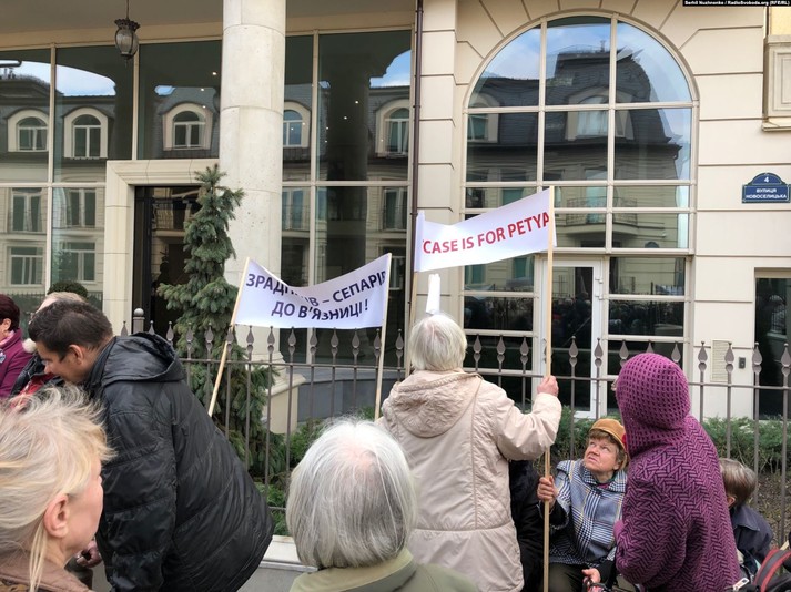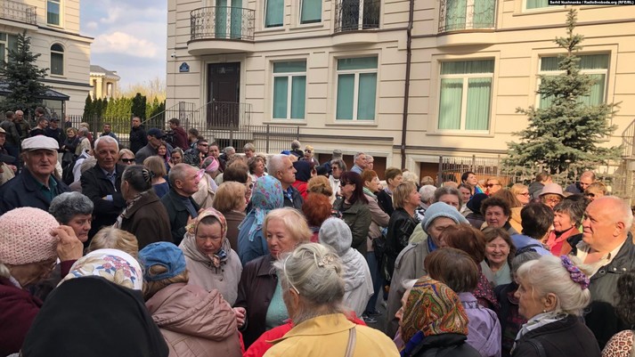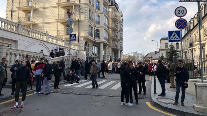 Офіс кандидата в президенти України Володимира Зеленського на вул. Новоселицькій у Києві у вівторок, 9 квітня, пікетують сотні людей.