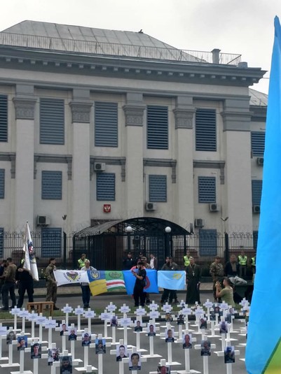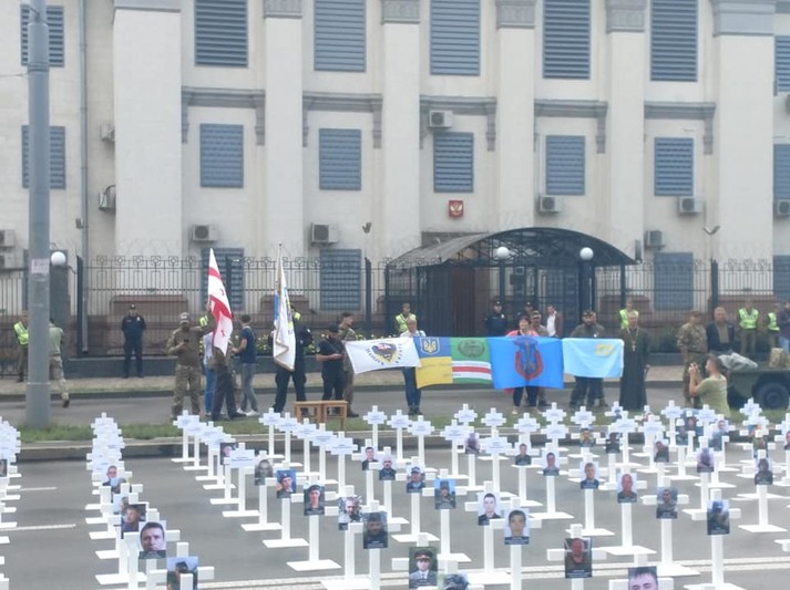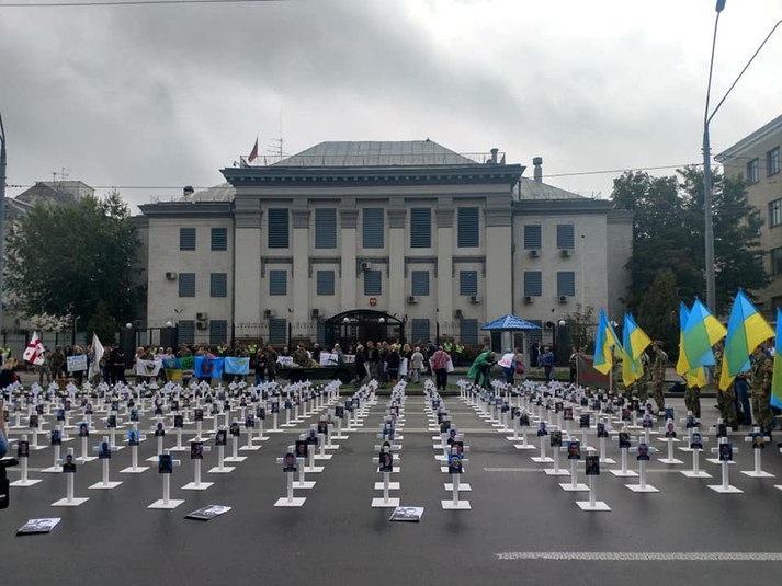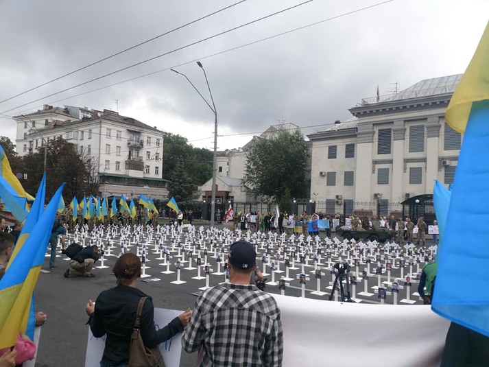 Під будівлею посольства Росії у Києві відбувається акція пам'яті загиблих під Іловайськом у 2014 році.