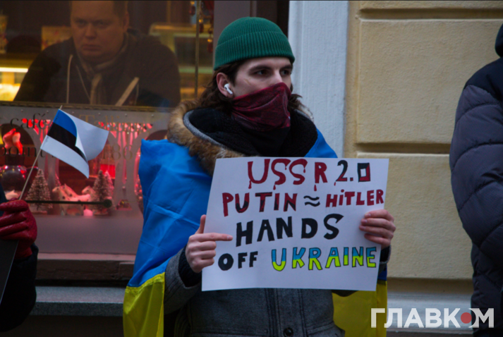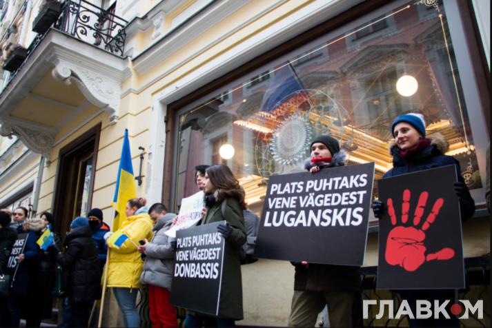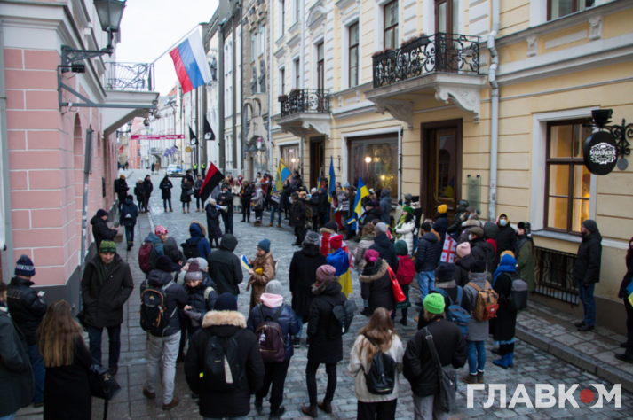 23 лютого під посольством Російської Федерації в Таллінні (Естонія) зібралися кілька десятків місцевих українців, представників грузинської діаспори та закордонних працівників, які перебувають в естонській столиці. Про це повідомляє «Главком».