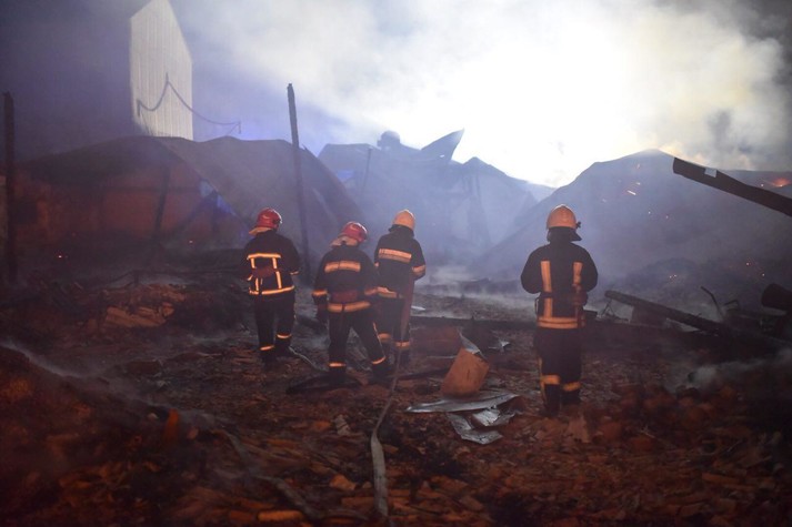 «Пожежа сталася напередодні пізно увечері. Орієнтовна площа загоряння - 1200 кв м. Існувала реальна загроза перекидання полум'я на сусідню будівлю недіючого млина», - розповів Данілін.