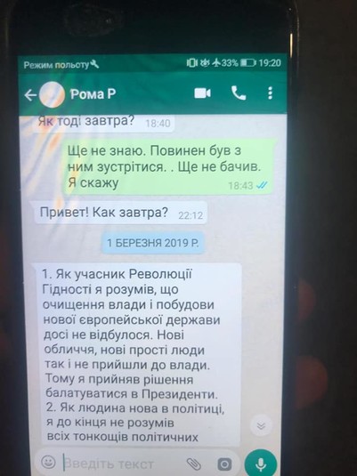 Нагадаємо, 6 березня генеральний прокурор Юрій Луценко написав у Facebook, що Генпрокуратура спільно з Державним бюро розслідувань та Службою безпеки затримали двох осіб, які намагалися вручити долари в еквіваленті 5 млн грн кандидату в президенти Юрію Тимошенку за відмову брати участь у виборах. Луценко також повідомив, що сам Юрій Тимошенко кілька днів тому звернувся в ГПУ після спроб вплинути на нього. Генпрокурор поінформував, що зловмисники затримані за статтею 157 ч. 3 (перешкоджання здійсненню виборчого права). Він додав, що слідству відоме листування затриманих виконавців із політиками.