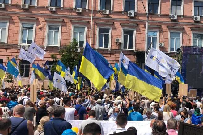 Близько 10 тисяч людей з усіх регіонів України вийшли під стіни Печерського суду, щоб підтримати п’ятого президента, лідера партії «Європейська солідарність» Петра Порошенка.