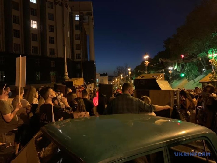 У вівторок ввечері під будинком уряду проходила акція протесту, учасники якої вимагали скасувати обмеження на проведення культурних подій під час адаптивного карантину.
