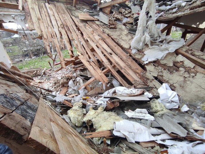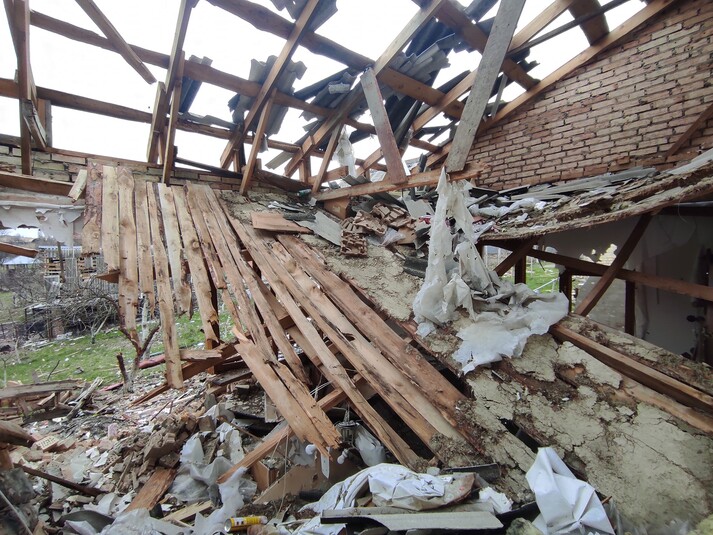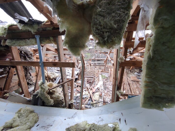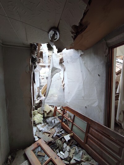 На фотографіях видно, що споруда знищена вщент: впали перекриття, немає даху. У кімнатах вибиті двері. Частина стелі й стін лежать на меблях, які вціліли.
