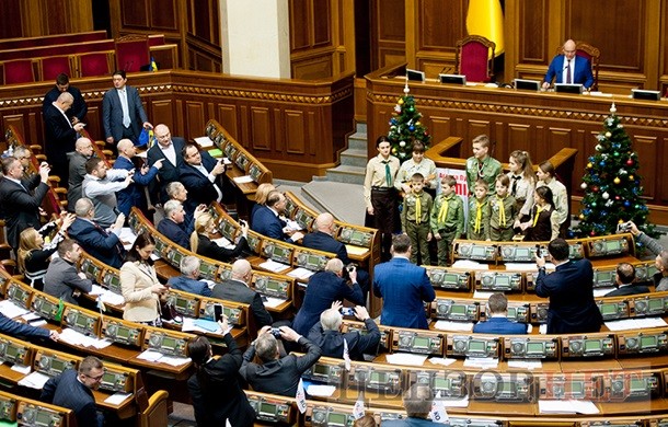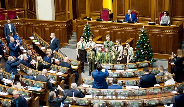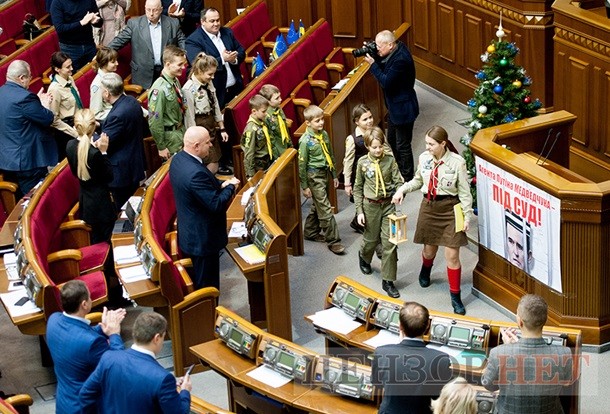 Пластуни принесли Вифлеємський вогонь у сесійну залу і заспівали пісню депутатам та побажали українським чиновникам «мудрих рішень на благо України».