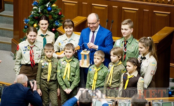 У середу, 19 листопада, юні скаути в супроводі кількох старших представників організації передали лампаду з вогнем спікеру Верховної Ради Андрію Парубію.