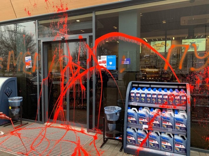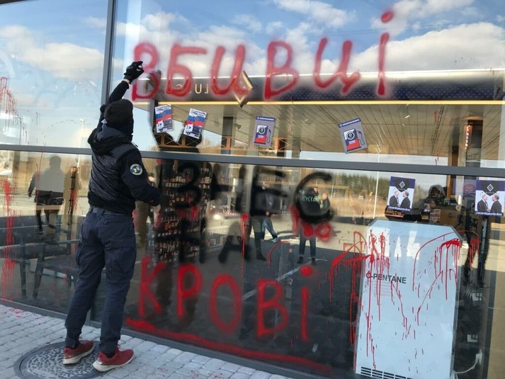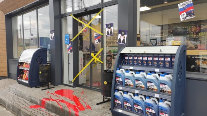 Активісти позаливали фарбою автозаправки, які пов’язують із Медведчуком (фото)
