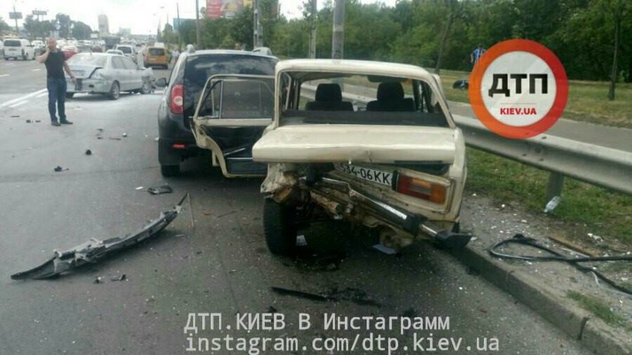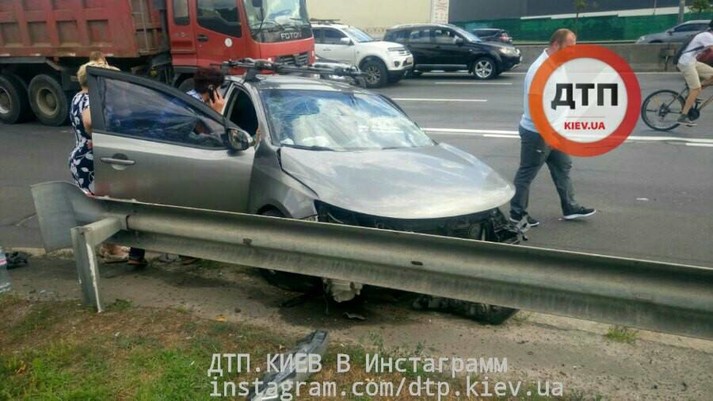 Також повідомляється що сірий Mitsubishi Lancer їхав зі швидкістю близько 130-140 км. Уточнюється, що автомобіль «петляючи зачепив» Toyota Camry і і при з'їзді з Московського мосту в сторону метро «Петрівка» біля зупинки громадського транспорту його різко розгорнуло поперек і він вдарився у КІА. Потім його відкидає і він таранить «Жигулі» і «Рено», після чого його відкидає в бік.