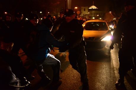 За даними очевидців, поліція застосувала сльозогінний газ. Крім того, як повідомляється, правоохоронці поводяться «досить агресивно» і «без розбору» борються з протестуючими.