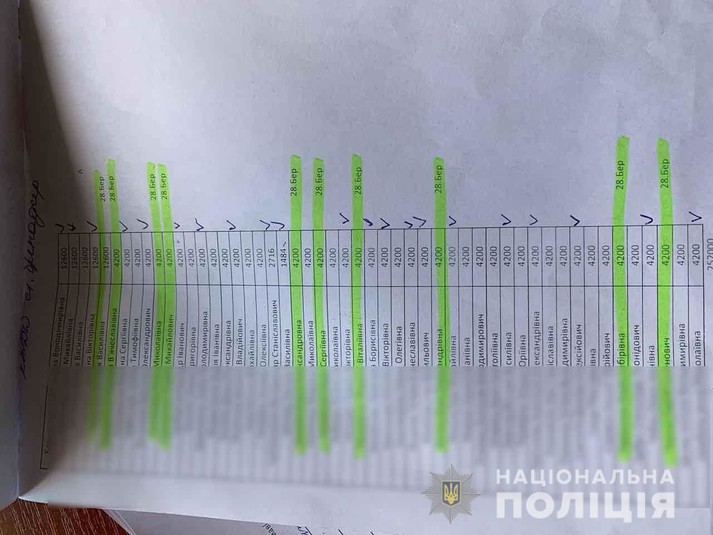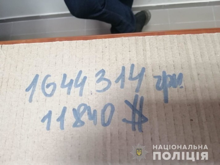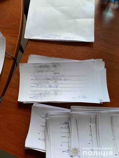 Зазначається, що грошові кошти, здебільшого номіналом по 500 гривень, а також документація з персональними даними громадян: відомості зі списками громадян, навпроти прізвища яких значилися суми грошових коштів в еквіваленті від 2 до 4,5 тис. грн.