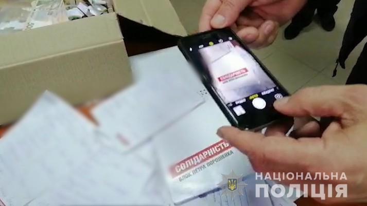 За даними прес-служби, у будівлі, де роздавали грошові кошти – в обмін на зобов’язання віддати свій голос 31 березня «за кандидата П.», патрульні поліцейські виявили: обладнане офісне приміщення з комп’ютерною технікою та коробками грошей на столах.