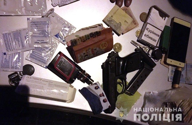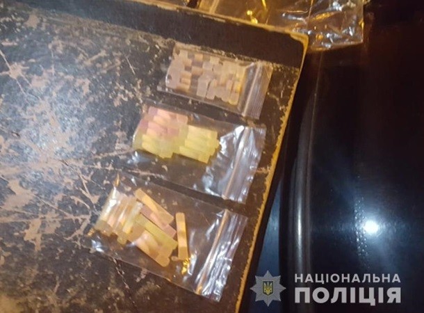 У затриманих поліцейські вилучили 173 пластикові трубочки з речовиною, схожою на метамфетамін, 70 мл опію ацетильованого та 65 пакетиків марихуани, а також пістолет і п'ять набоїв калібру 9 мм.