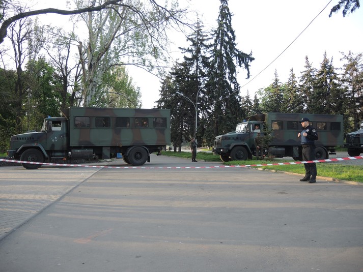 «Декілька автобусів спецпризначенців. Також в околицях знаходяться націоналісти, яких поліція упізнала і спробувала перевірити документи. Хлопці відійшли», - написав він у Фейсбук.