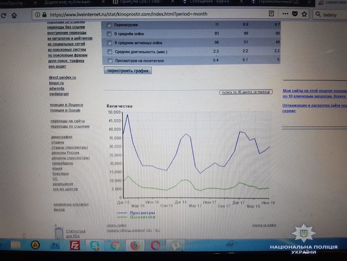 Співробітники кіберполіції провели комплекс оперативних заходів та встановили 31-річного чоловіка, який адміністрував даний ресурс. Так, протягом останніх трьох років інтернет-ресурс kinoprostir.com надавав можливість своїм користувачам без дозволу правовласників, відтворювати і розповсюджувати велику кількість аудіовізуальних творів. Зокрема, і український фільм «Кіборги».