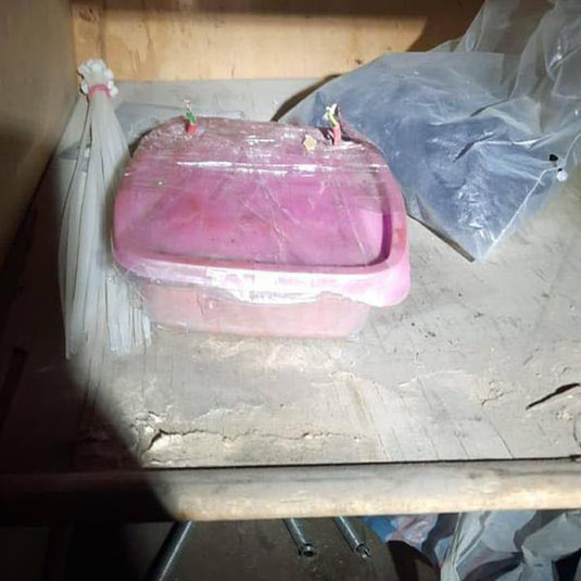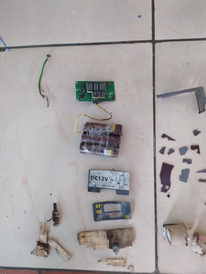 У ході невідкладних обшуків за місцем проживання чоловіка правоохоронці виявили частини саморобного вибухового пристрою, пакети з порошкоподібною речовиною, схожою на вибухову, засіб для заглушування GSM-сигналу, товарні накладні «Нової Пошти», чорнові записи тощо.