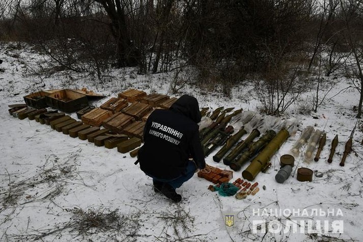Зі схованки правоохоронці вилучили міни 82 мм, снаряди ВОГ різних модифікацій, деякі зі слідами переробки, гранати РГД-5 і Ф-1 із запалами, РПГ різних модифікацій, снаряди до РПГ і стартові двигуни до них, реактивний піхотний вогнемет, тротилові шашки, снаряди і патрони різних калібрів - загалом більше восьми тисяч смертоносних предметів.