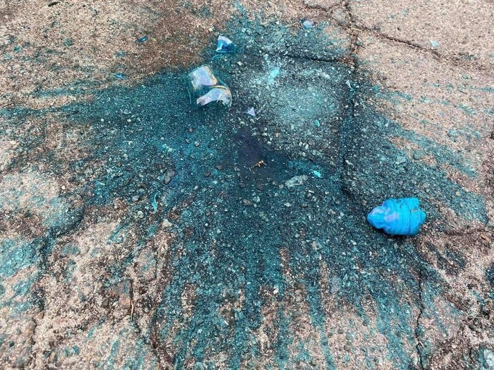 «Розписані стіни та огорожа комунального закладу, розкидані по території лампочки із зеленкою, пошкоджені авто», – зазначив він.