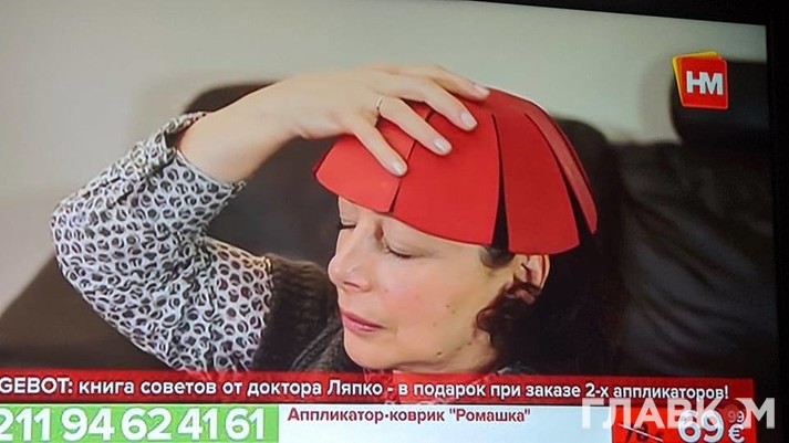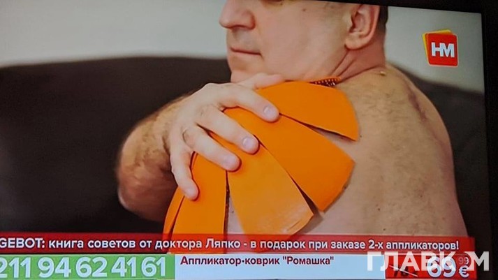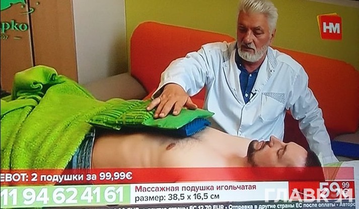 Аплікатор-коврик «Ромашка» від Миколи Ляпка телеглядачам пропонують купити за 69,99 євро, а масажну подушку з голками – за 59,99 євро.