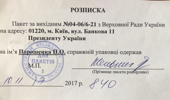 Він долучив документи на доказ того, що відповідні документи політ сила ще в листопаді подала в Адміністрацію президента.