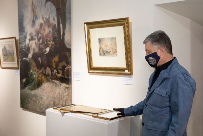 «Наголошуємо, що це не є відкриття виставки, воно буде пізніше, коли урядом будуть зняті карантинні обмеження. Тут буде відкрито для широкого загалу. Це дуже важливі роботи митців, більшість з яких має безпосереднє відношення до України. У нас є декілька ідей, як це оформити. Воно буде ще доопрацьовуватися, і час в першій декаді червня дасть нам цю можливість», – повідомив Порошенко.