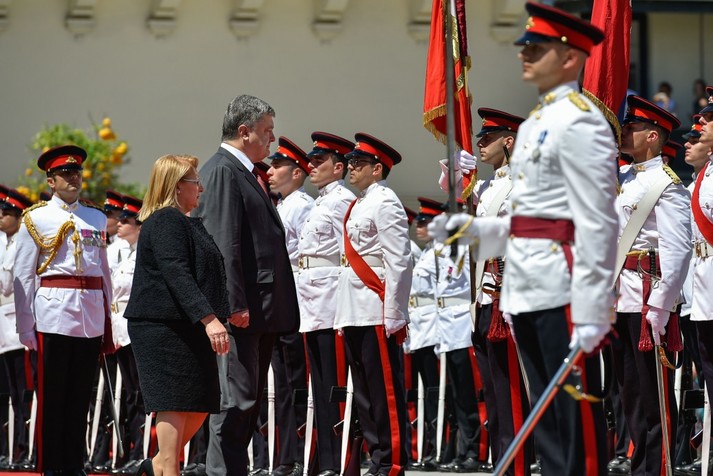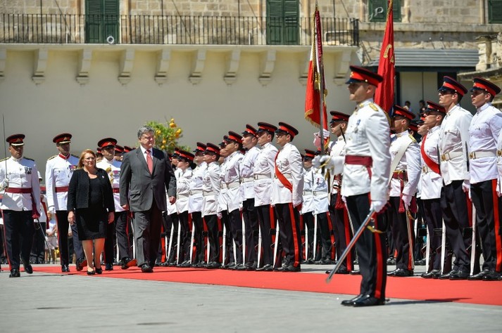 Президент України Петро Порошенко з дружиною Мариною прибув до офіційної резиденції президента Республіки Мальта – Палацу великого магістра у місті Валлетта.