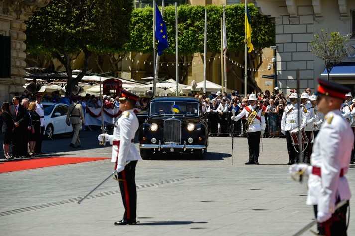 Як повідомляє прес-служба глави держави, на площі Святого Георга перед резиденцією президентське подружжя зустріли президент Мальти пані Марі-Луїз Колейро-Прека та її чоловік Едгар Прека.