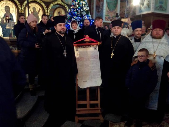 Томос доставили у Свято-Покровський кафедральний собор Рівного. Там проходить подячний молебень за отримання Томосу про автокефалію та утворення Православної церкви України.