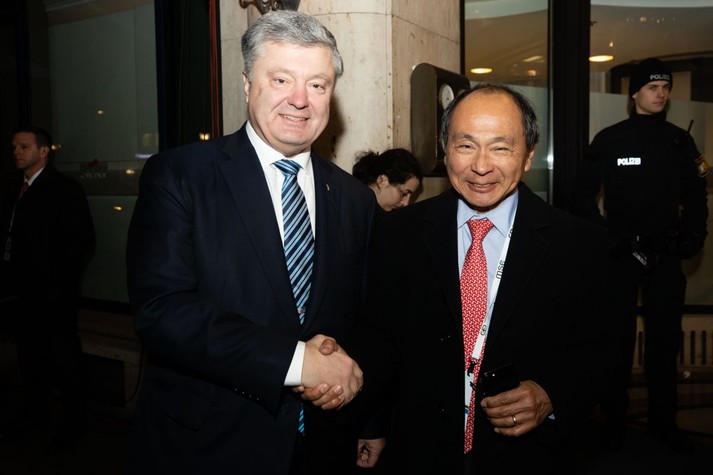 «Наші міжнародні партнери виходять із своїх національних інтересів. А наше завдання – переконати, що коли Україна захищає свій суверенітет – вона захищає не тільки себе, але й всю Європу і весь світ. Коли Україна захищає мій суверенітет – вона також захищає свободу і демократію у всьому світі. І підтримка України виходить з національних інтересів кожної держави. Ось цим я займався п'ять років свого президентства і зараз, як і я і обіцяв, я продовжую цю наполегливу, копітку роботу», – наголосив Порошенко.
