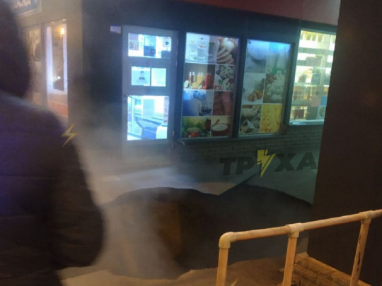 Яма, яка утворилася через прорив труби, швидко заповнилася окропом. У коментарях її вже назвали «порталом до пекла».