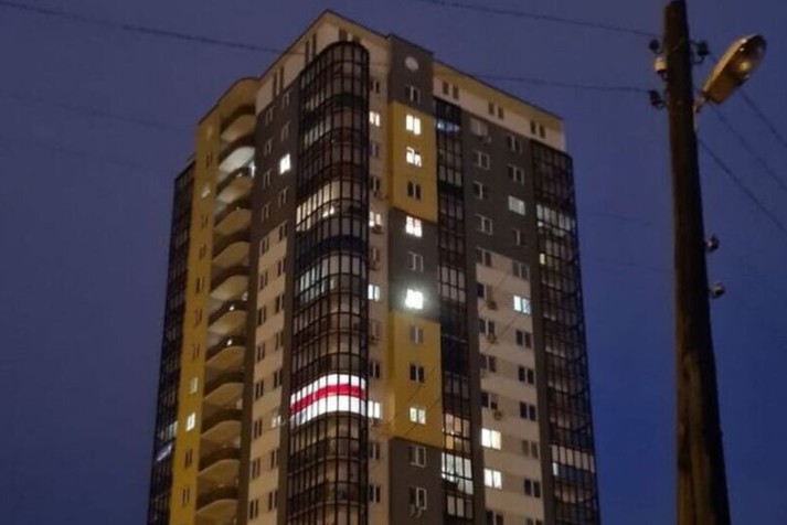 Білоруська родина, яка мешкає у багатоповерхівці в Мінську, що на вулиці Орловській, два тижні тому вивісила штори, які нагадують біло-червоно-білий прапор.