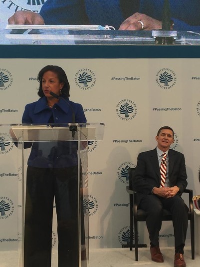 «Американська традиція, яку, як на мене, варто перейняти й Україні: передача естафети в Інституті миру від однієї команди іншій. Радник президента США Барака Обами з національної безпеки Сюзан Райс, якій вдячний за співпрацю, і радник з національної безпеки новообраного президента США Дональда Трампа генерал Майкл Флінн, з яким обговорюємо найближчі плани взаємодії», – прокоментував Чалий свої фотографії з цього заходу.