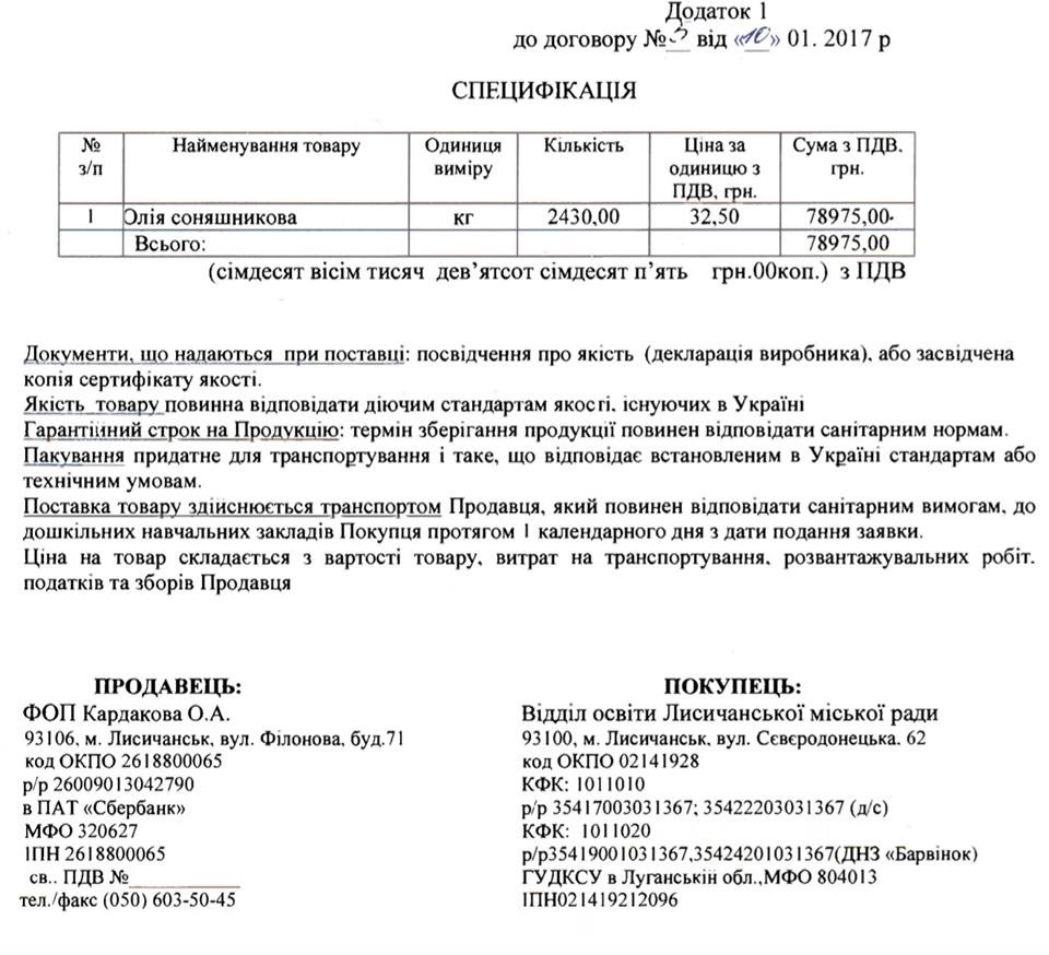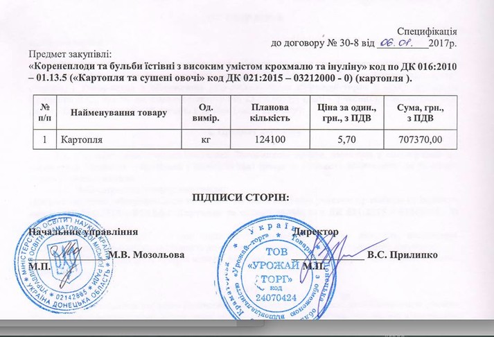 За його даними, «Смарагдове місто» уклало з ФОП Родін Олександр Петрович низку угод на постачання продуктів харчування на суму 3,4 мільйона гривень, але вартість харчів як мінімум в 2-3 рази більша, ніж на ринку.