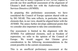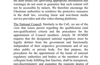 «На погоджувальних радах я неодноразово закликала голову ВР оприлюднити ці висновки, аби колеги усвідомили, що проєкт не відповідає вимогам ЄС. Навпаки, наші партнери вказують на неприпустимість, недемократичність і неєвропейськість наділяти Нацраду невластивими повноваженнями, дозволяти без суду закривати канали, при цьому не забезпечивши її мінімальну незалежність», – зауважує народна депутатка.