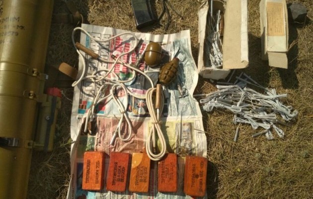 Зброя та вибухівка були виявлені в покинутій будівлі в Новотроїцькому в ході реалізації інформації оперативних підрозділів ДПСУ та за їх участі спільно зі співробітниками СБУ, Нацполіції та ДФС України в Донецькій області.