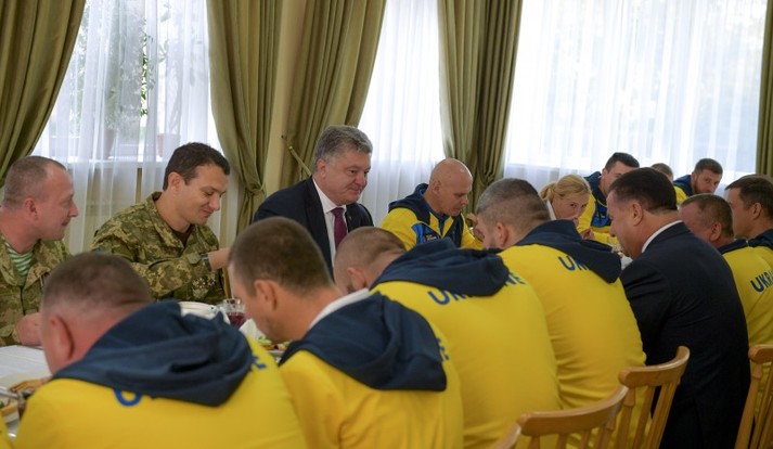Президент Петро Порошенко відвідав місце розташування Національної збірної ветеранів, яка готується до участі у міжнародних змаганнях «Ігри нескорених», що відбудуться 20-27 жовтня у Сіднеї в Австралії. Він поспілкувався із членами збірної команди, переможцями національних змагань «Ігри нескорених-2018», їх тренерами та ознайомився з ходом підготовки команди. Порошенко також пообідав разом з нашими спортсменами.
