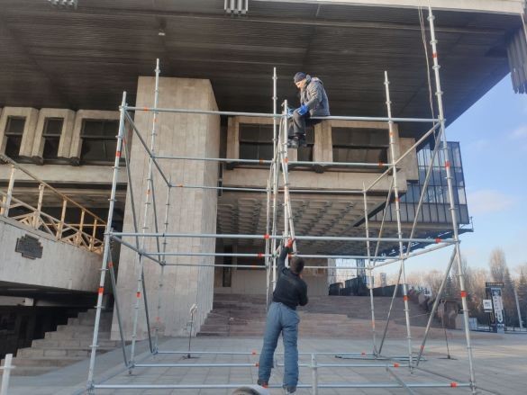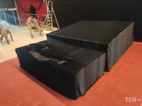 У фойє театру триває генеральне прибирання. Комунальники облаштовують місце, де стоятиме труна та місця для сидіння для близьких та рідних очільника Харкова. Окреме місце виділили для симфонічного окрестру, також буде струнний квартет.