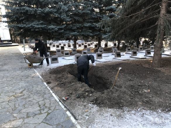 Також коммунальники працюють на міському кладовищі №2, де збираються поховати померлого мера. Там прибирають Алею видатних харків'ян та вхід на кладовище. Робітники вручну копають могилу в промерзлій землі. Для цього обрали місце поруч із Алеєю загиблих воїнів часів Другої світової війни. Могила мера Харкова буде поруч із похованням Євгена Кушнарьова, вбитого 14 років тому на полюванні.