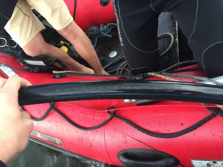 «Прикордонники Білгород-Дністровського загону спільно із водолазами відділу спеціальних дій на воді Одеського загону морської охорони, під час моніторингу берегової лінії Кучурганського водосховища, виявили пластикову трубу діаметром 32 мм.