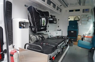 Благодійний фонд передав також дві машини швидкої допомоги. Одна з них так званого типу А1 на базі Fiat Doblo. Вона призначена для санітарних перевезень. В автівці є таке обладнання: