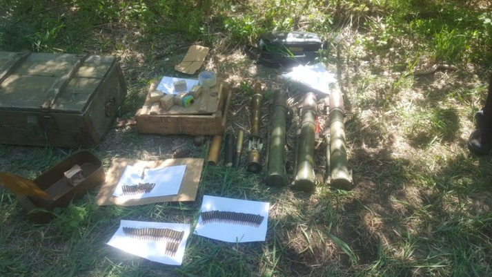 «Під процесуальним керівництвом Військової прокуратури Маріупольського гарнізону в рамках кримінального провадження, оперативними співробітниками Донецького прикордонного загону спільно з військовослужбовцями відділу прикордонної служби, представниками Державного бюро розслідувань, Нацполіції та оперативної групи СіЗ ВКР СБ України ОТУ «Схід» було виявлено засоби військового ураження», - йдеться у повідомленні.